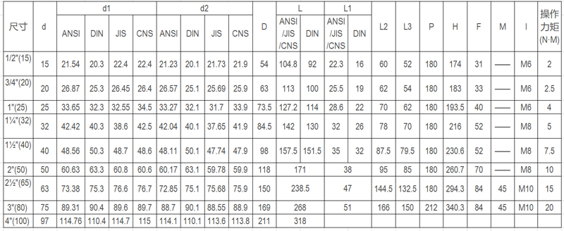 2) 尺寸:1/2''-4'';20mm-110mm;DN15-DN100