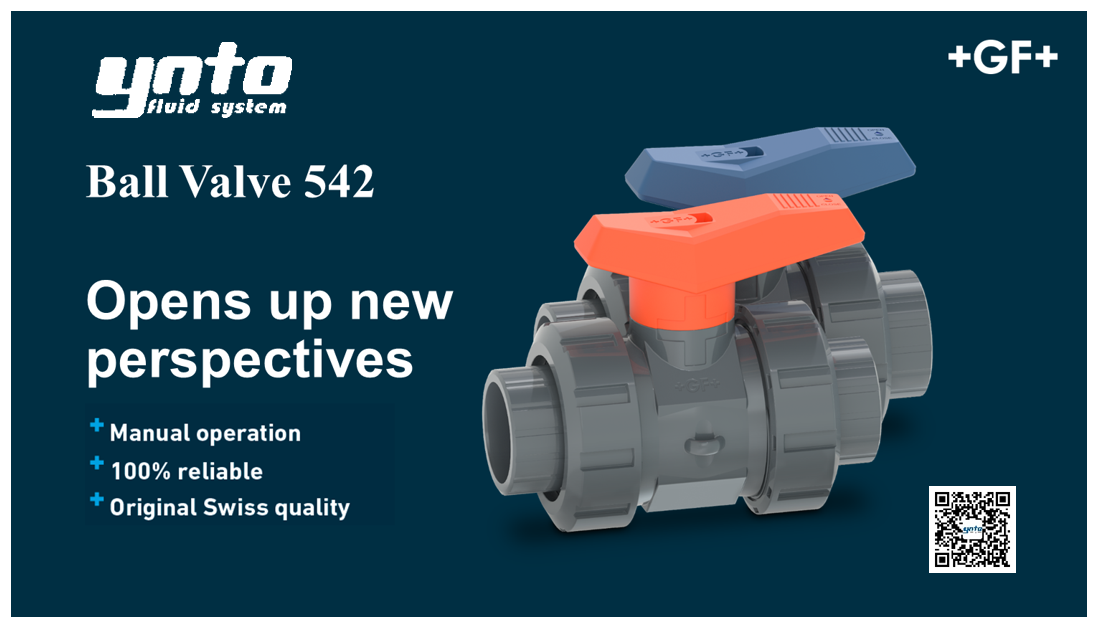 - 藍色手柄 542 球閥,采用 PE 材質作為閥球密封。
